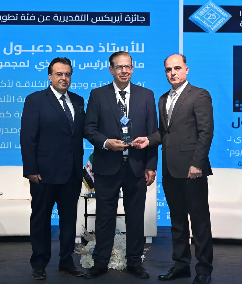 فئة تطوير الأنظمة المعمارية: الأستاذ "محمد دعبول" المالك والرئيس التنفيذي لمجموعة مدار ألمنيوم تقديراً لريادته وجهوده الخلّاقة لأكثر من نصف قرن في هذا المجال.